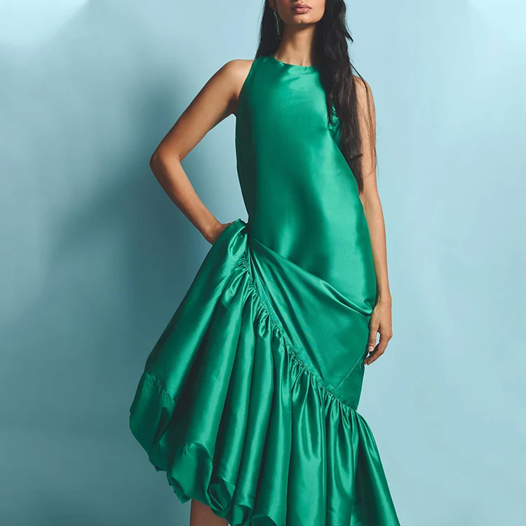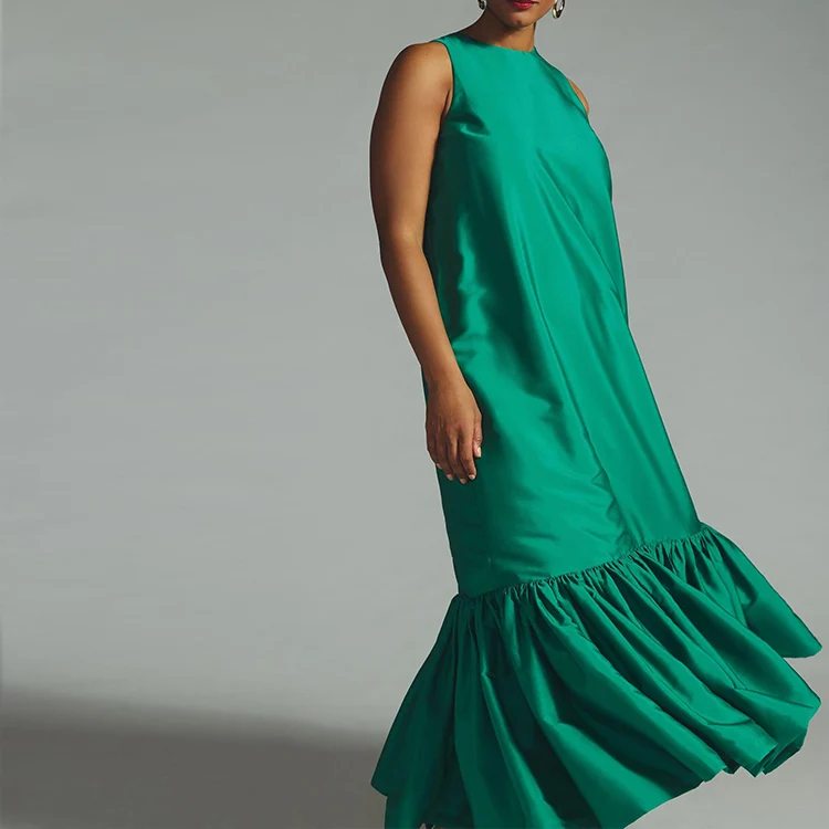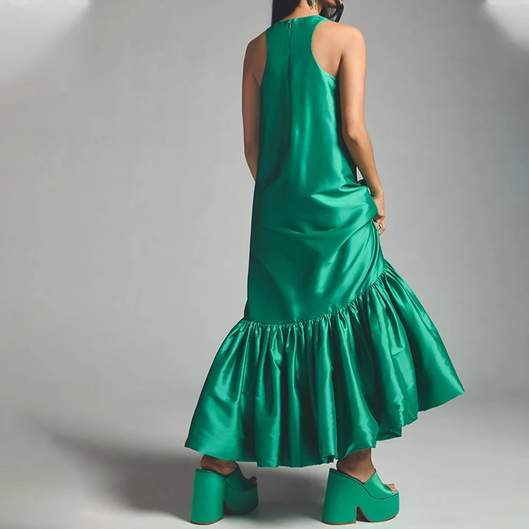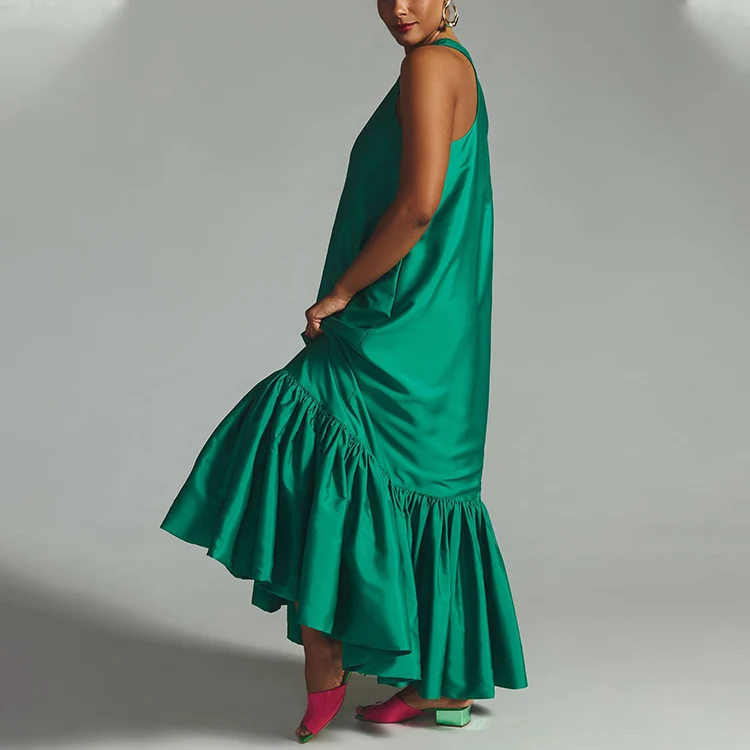 HL Factory's Elegant Summer Women's Long Maxi Dress Custom Party Sleeveless Ruffle Sundress Solid Pattern Natural Plain Dyed
